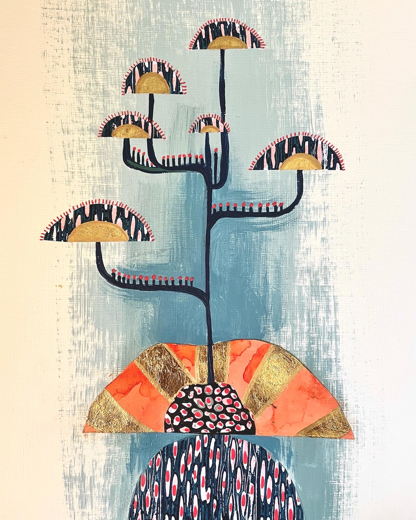 Painted and Printed Papers, Gold Leaf, Acrylic and Gouache